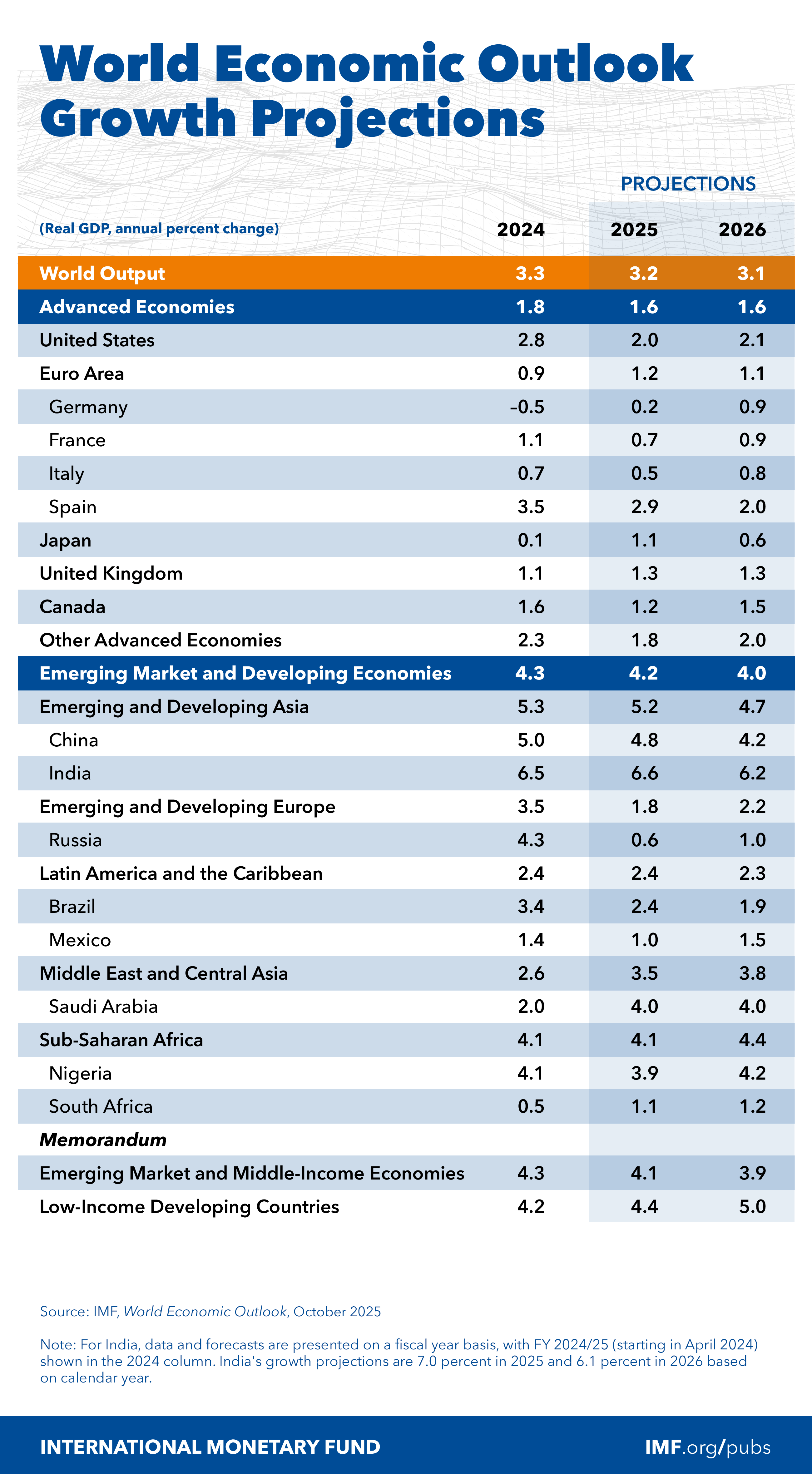 For the world economy as a whole, the IMF is projecting growth of 3.2% this year. “The rules of the global economy are in flux,” it warns. “Details of newly introduced policy measures are slowly coming into focus, and growth prospects are shifting along with them.